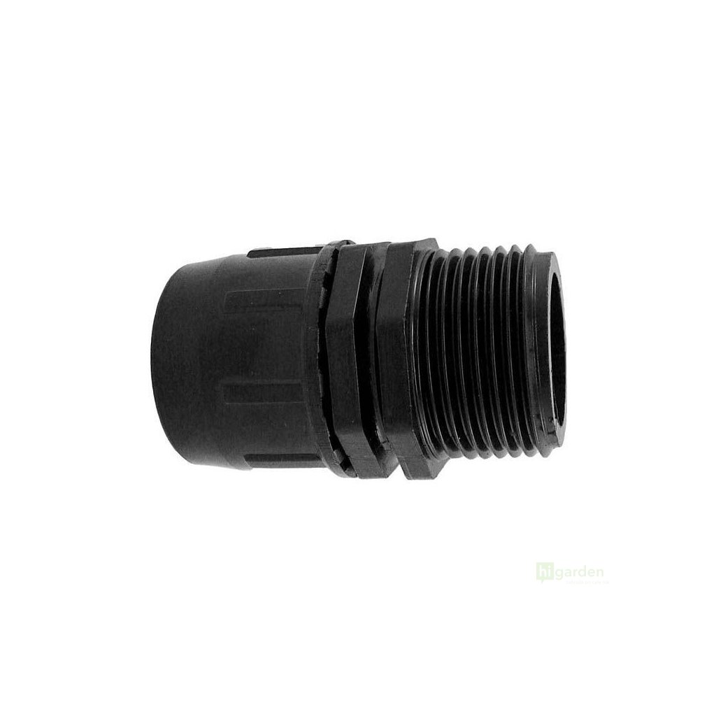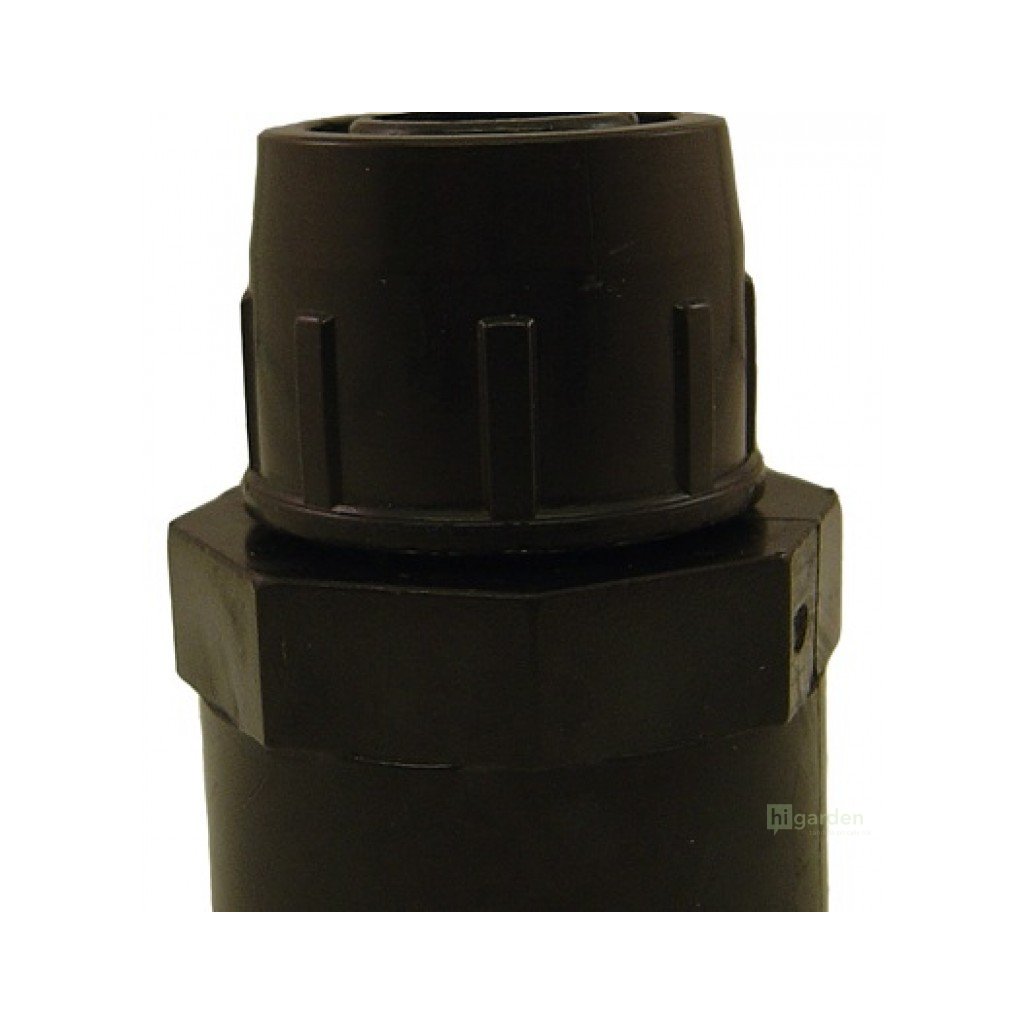 Connect the external thread to the Irritec Pressure Irrigation System. Diameter 25 mm (1″) x 3/4″. "Easy" components are easy to install and protected from being yanked out of the hose thanks to the plastic nut.