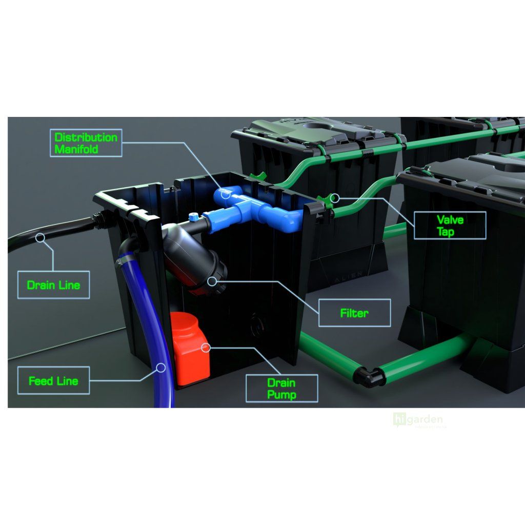 You will need a tank with a capacity of at least 500L for the Rain System. FlexiTank. In our range you will also find the original Alien Hydroponics tank.
