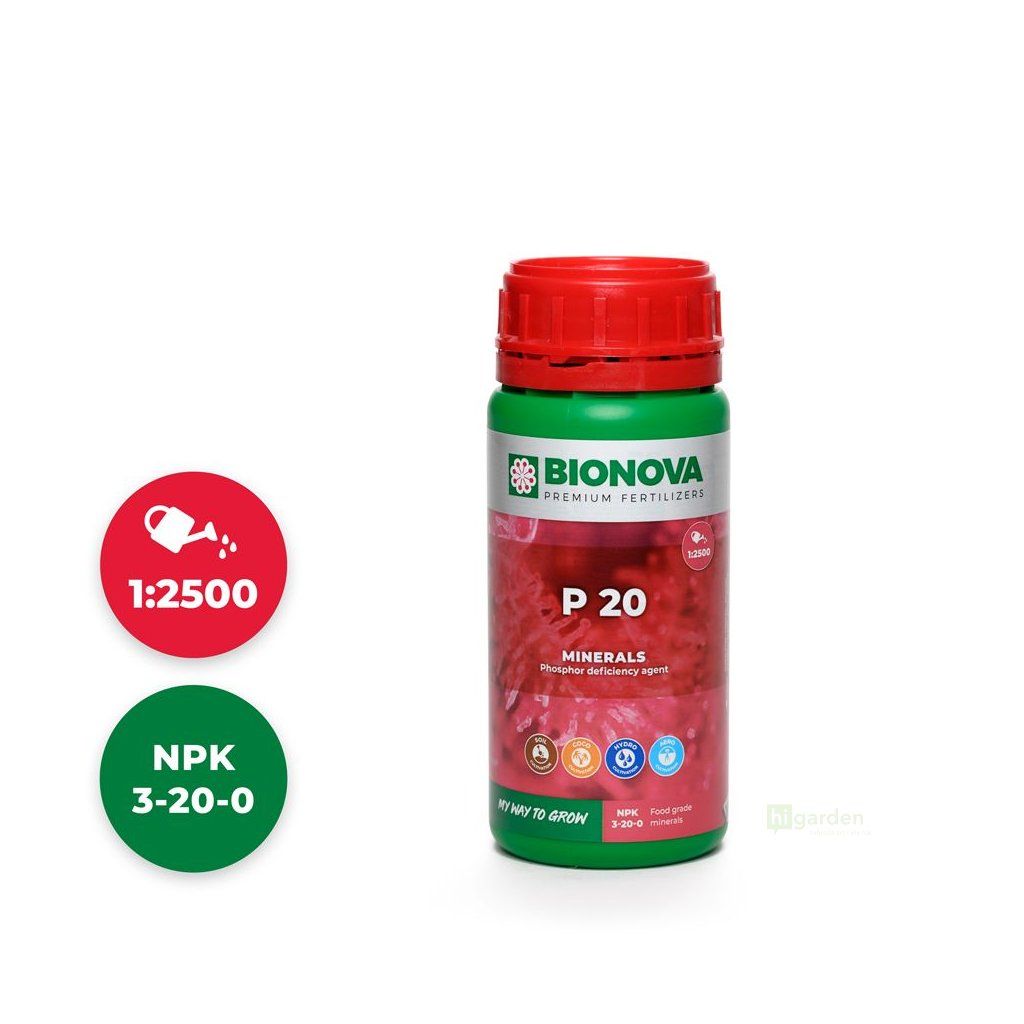 BioNova P 20 contains 20% of phosphorus in the form of P2O5. Phosphorus supports root development and blooming. It is also important in forming cell membranes, sugar processing and enzyme production. Last but not least, they are indispensable for producing ADP and ATP, which are the energy carriers in plants.