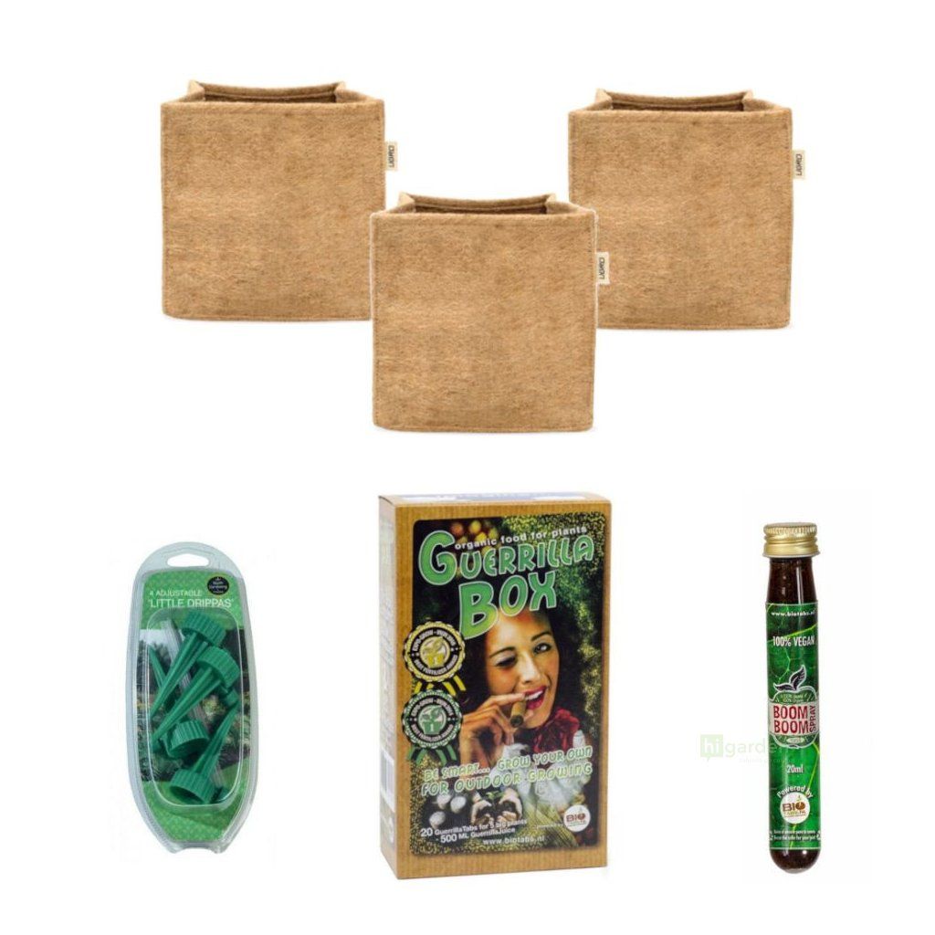 This kit is ideal for anyone looking for a discreet, self-sufficient and eco-friendly solution for growing in remote locations, in the garden, in the backyard or even on the balcony. If you prefer the "plant and almost forget" method and want to rely on the power of nature, the "Outdoor Guerilla Set" is perfect for you.