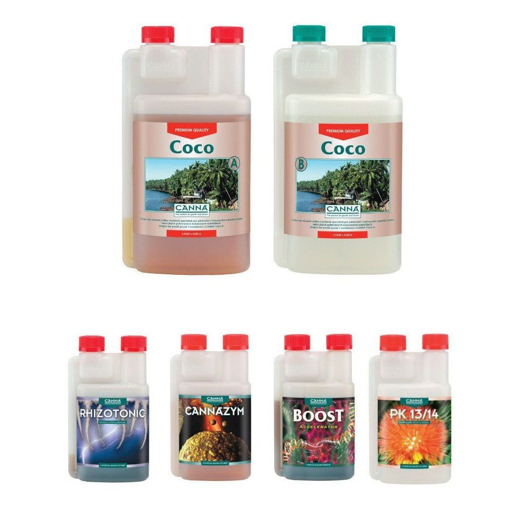 Canna Coco A & B (1 litre). Its formula is specially designed for the unique properties of the coco substrate. It compensates for the natural binding of calcium and magnesium in coconut and provides plants with all key nutrients in a perfectly absorbable form thanks to the natural chelates and humic acids.