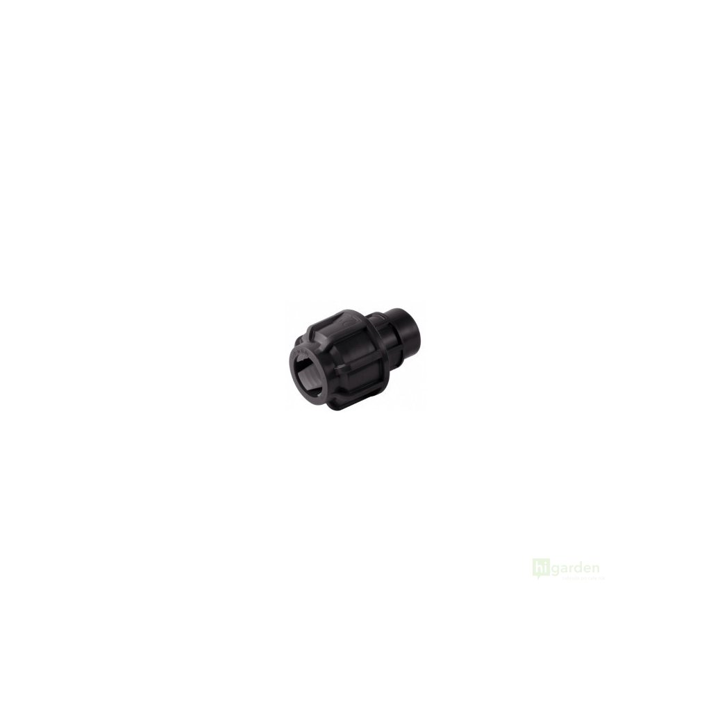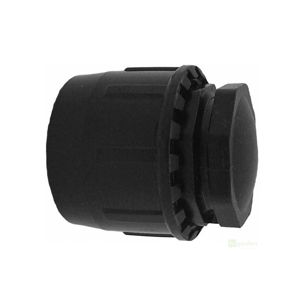 Plastic plug for Irritec pressure irrigation. The "Easy" components are easy to install and are protected from being pulled out of the hose thanks to the plastic nut.
