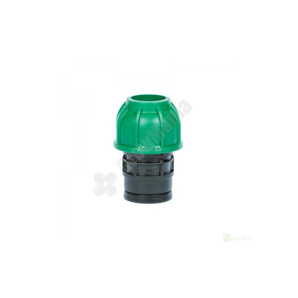 High-quality Connecto Clamp Coupling with female thread for irrigation systems. The coupling has a 32mm hose opening and a 1" male thread. Thanks to the thread you can connect check valves, water filters and more.