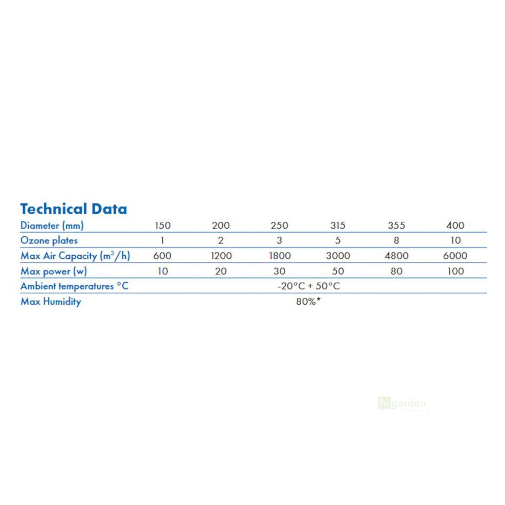 AirOzone ozone generator - 200 mm, 1200 m3/h