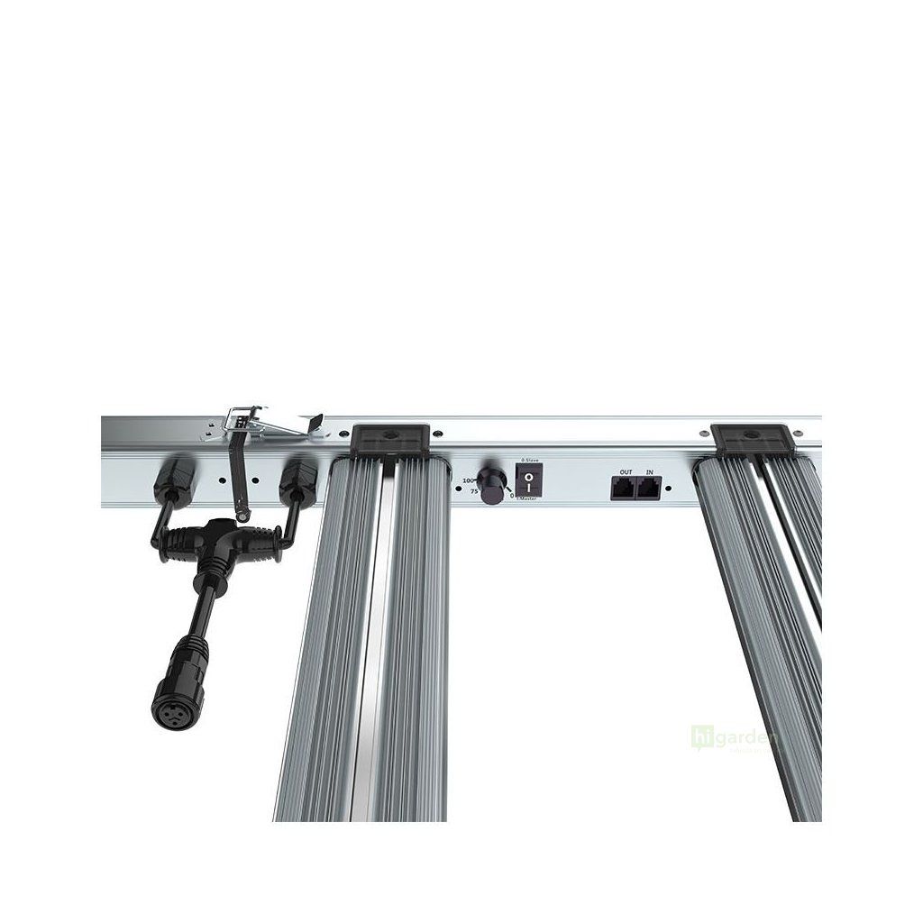 The luminaire is ideal for growing areas up to 200 × 150 cm. It offers built-in dimming and can be controlled with a standard external 0-10V driver.