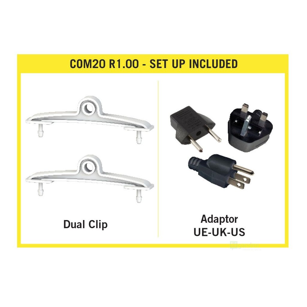 Set of power supply and accessories to power and hang two pieces of all types of Secret Jardin Cosmorrow® luminaires.: