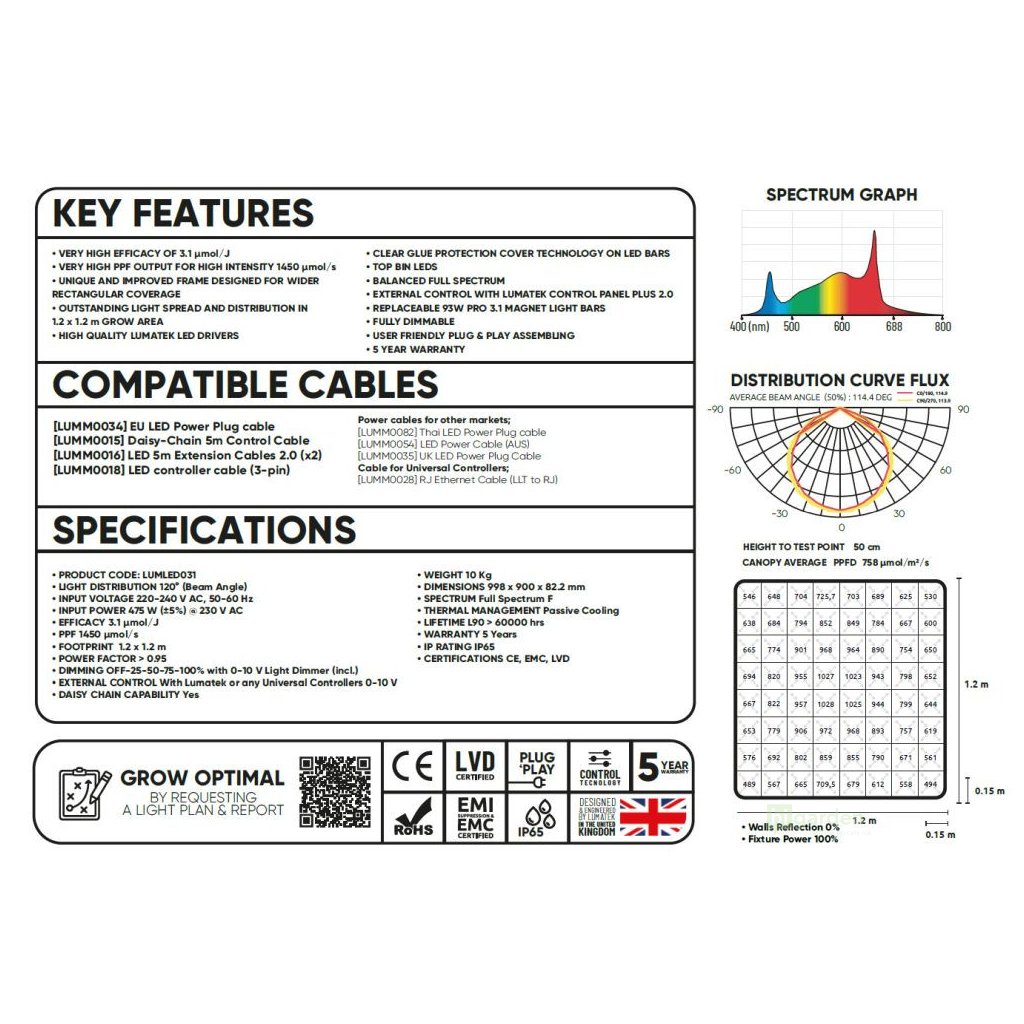LUMATEK ZEUS 465W PRO 3.1 LED is the ideal choice for growers looking for powerful, economical and reliable LED lighting. Its features and technological innovations make it one of the brand's newest and most advanced products.