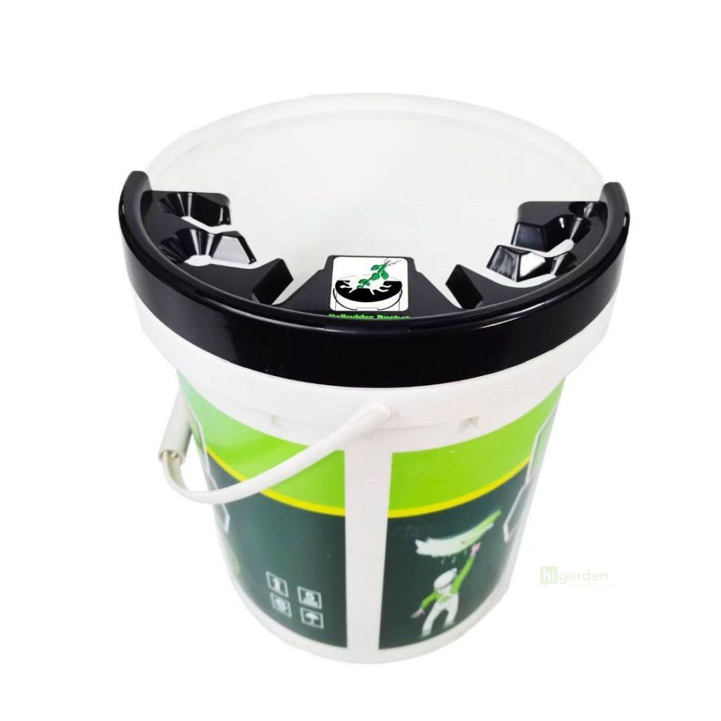 - Place the BucketBucker on the edge of the bucket (standard diameter).