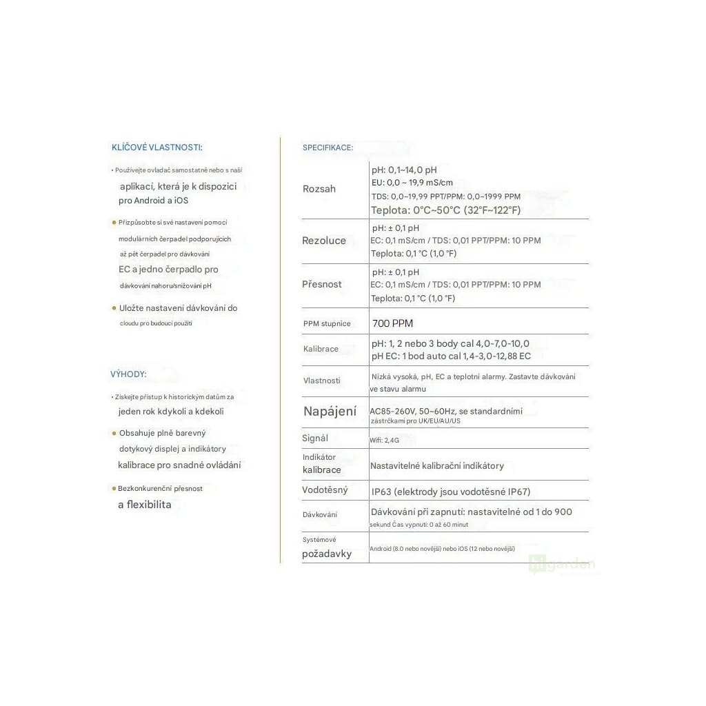 -Modular pumps support up to five pumps for EC control and one pump for pH adjustment (up/down).App compatibility allows you to use the controller standalone or link it to both the Android and iOS apps, giving you remote access and the ability to adjust settings anytime, anywhere.