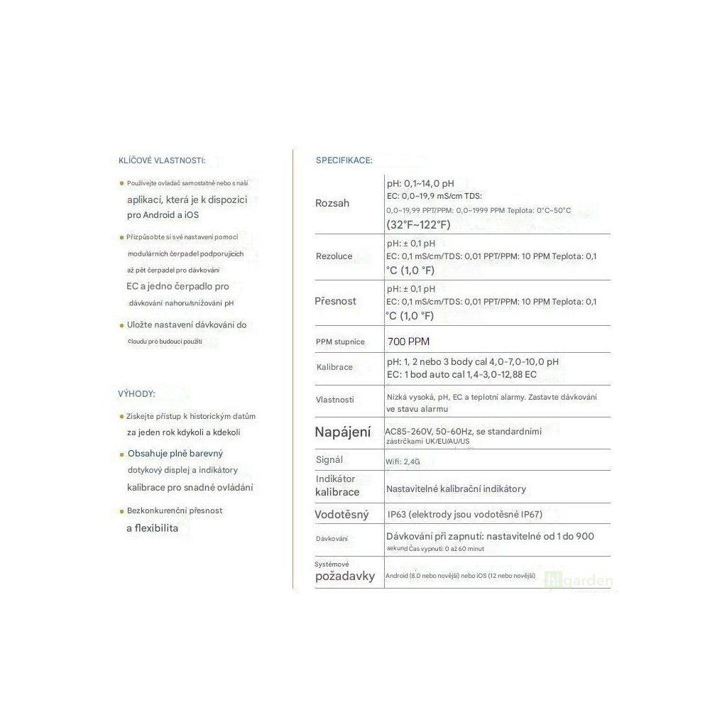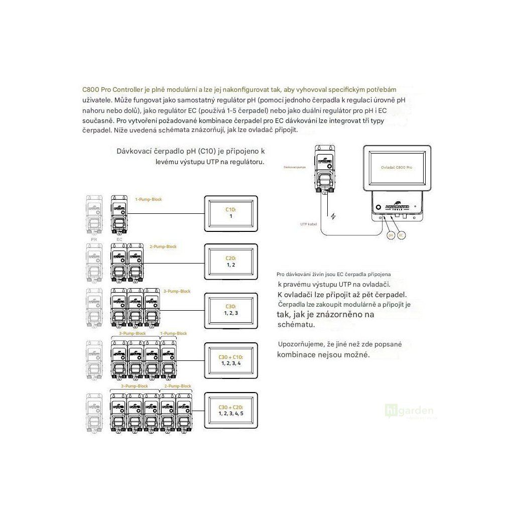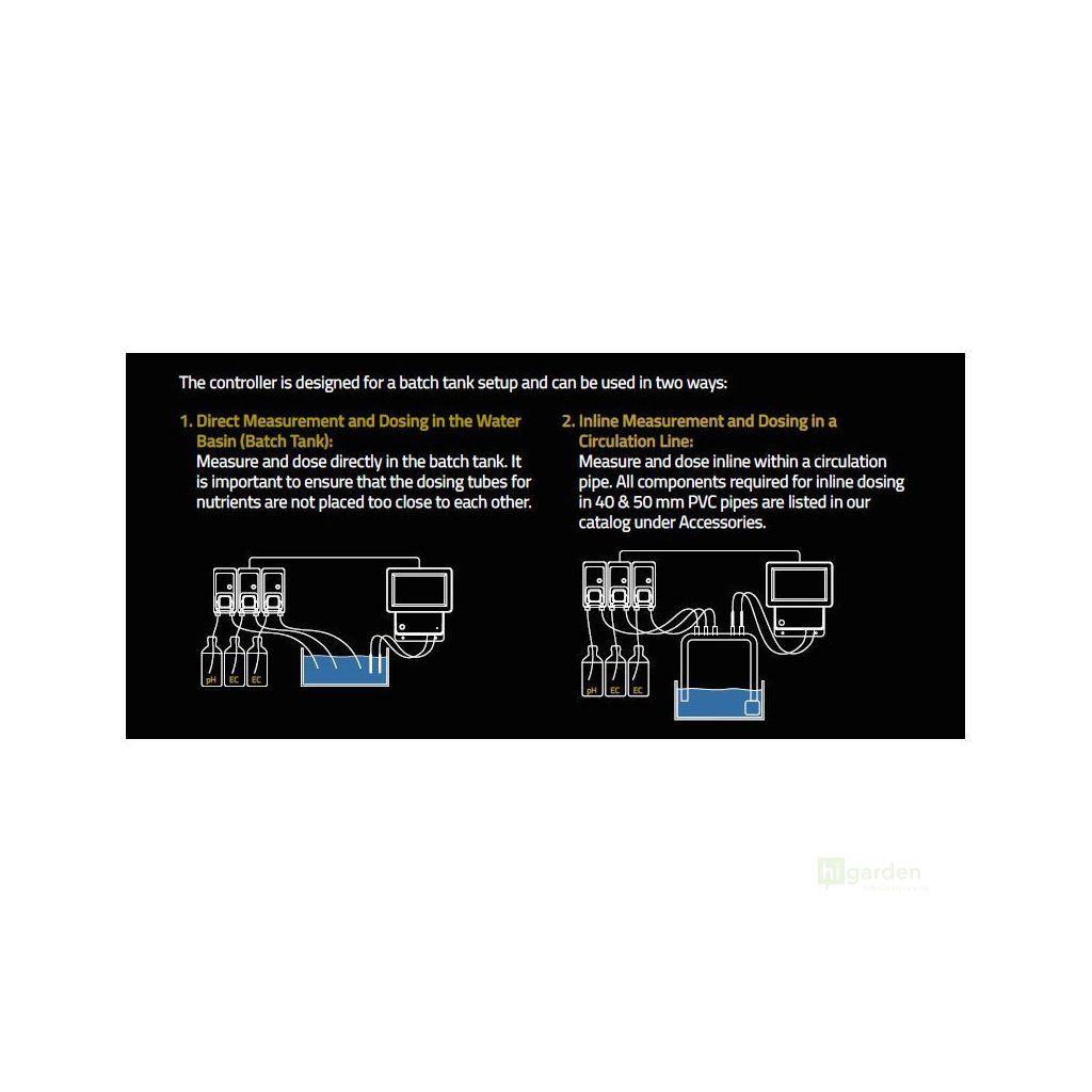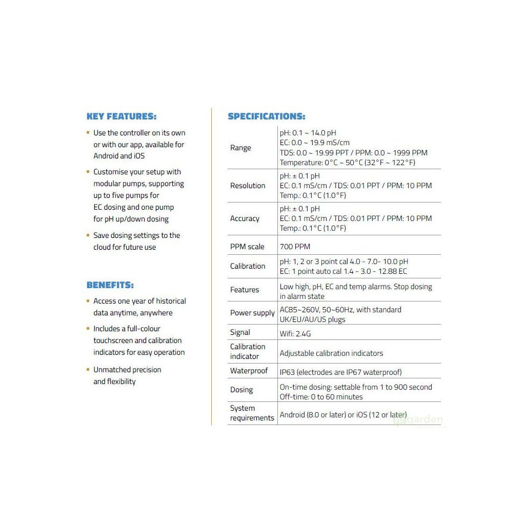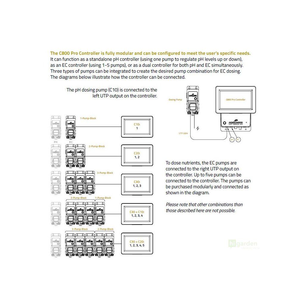 - Modular pumps support up to five pumps for EC control and one pump for pH adjustment (up/down), giving you flexible setup options to suit your specific needs