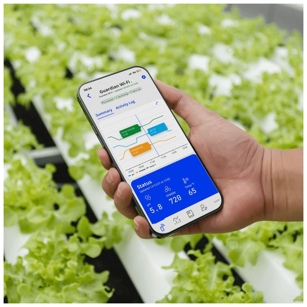 The comprehensive Bluelab Guardian Monitor is suitable for both hobby and commercial growers of plants and vegetables (hydroponics, aeroponics, aquaponics), as well as for fish farmers or industrial use.