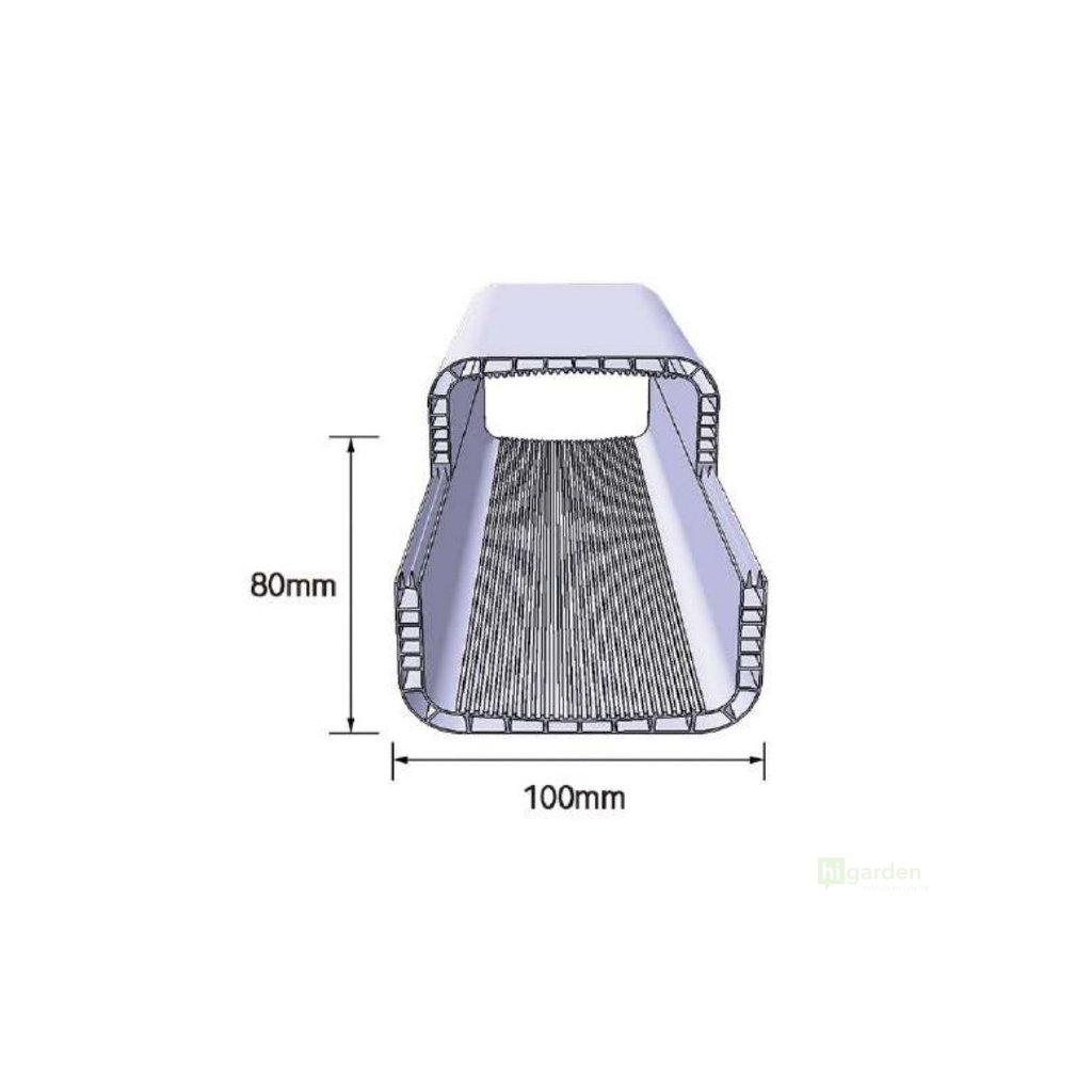 Low, double layered with lid without holes and with end caps on both sides (one with spout), cross section 100x80mm, tube length 3000mm. White PVC plastic with health certificate.