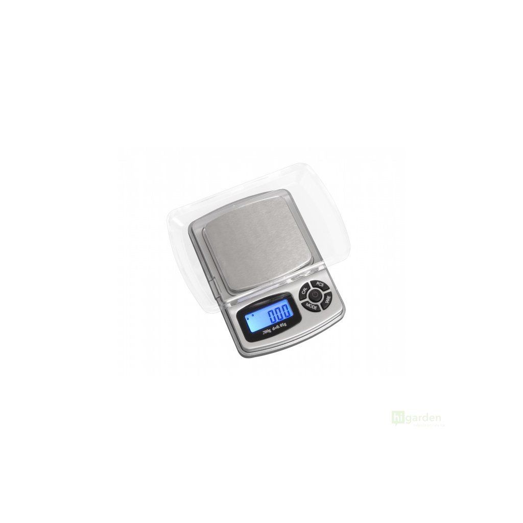 "On Balance digital scale with hundredth of a gram accuracy, stainless steel weighing platform and piece counting function (PCS).