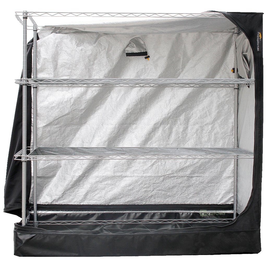 The construction is the same quality as the LITE+ tents, but their reflectivity is 90% because of the inner lining from Mylar 190D. It includes three removable shelves with adjustable height.
