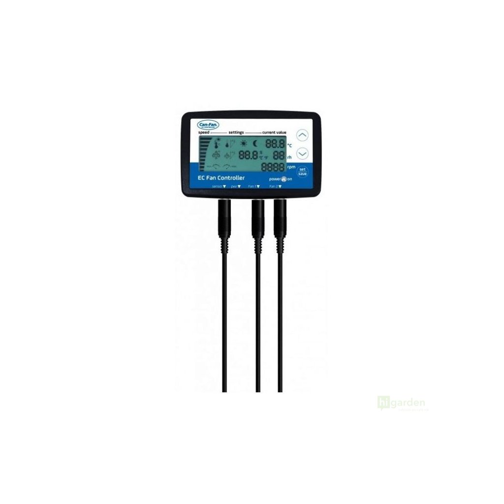 CAN is a modern LCD controller for EC fans. An advanced climate control system with LCD display that allows you to set temperature and humidity in combination with other important functions such as hysteresis, vacuum, maximum and minimum speed of EC motorized exhaust fans. The controller works only in combination with CAN Fan EC motor exhaust fans. Equipped with the latest technology, it is more energy efficient and guarantees higher motor performance and lower power consumption.