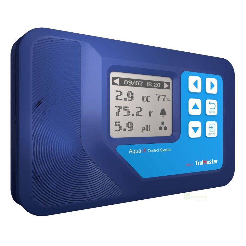 Aqua-X is a professional irrigation system. It is a fully customizable modular system. Installation is simple and the system can be easily expanded. The Aqua-X system is designed to control up to 30 separate irrigation zones (24vac solenoid valves or 120vac pumps). The Aqua-X system monitors pH/EC and water temperature, as well as monitors the current moisture level of the growing media using up to (8) water content sensors connected to a single Aqua-x control unit. Timers can be set as recycle timers or to operate at specific times of the day and for specific periods of time. Using the free TrolMaster app, the user can access all system settings and alerts from anywhere, anytime.
