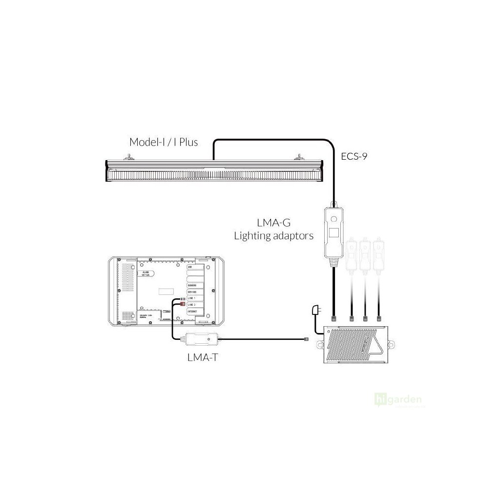 LMA-G is specifically designed for use with ThinkGrow Model-I and I Plus. The LMA-G needs to be connected to a lighting control adapter to offer group control functionality to the grow lights. Each LMA-G device can control one group of lights./ Each group of lights requires one LMA-G device.