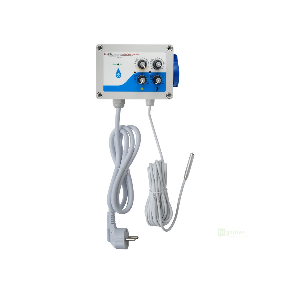 You can set the time interval and time separately for day and night watering. The unit comes in a waterproof case with hinged lid, compatible with CR mains plugs, built-in light sensor with 4m cable to detect day/night time. GSE Water Timer can withstand very humid environments.